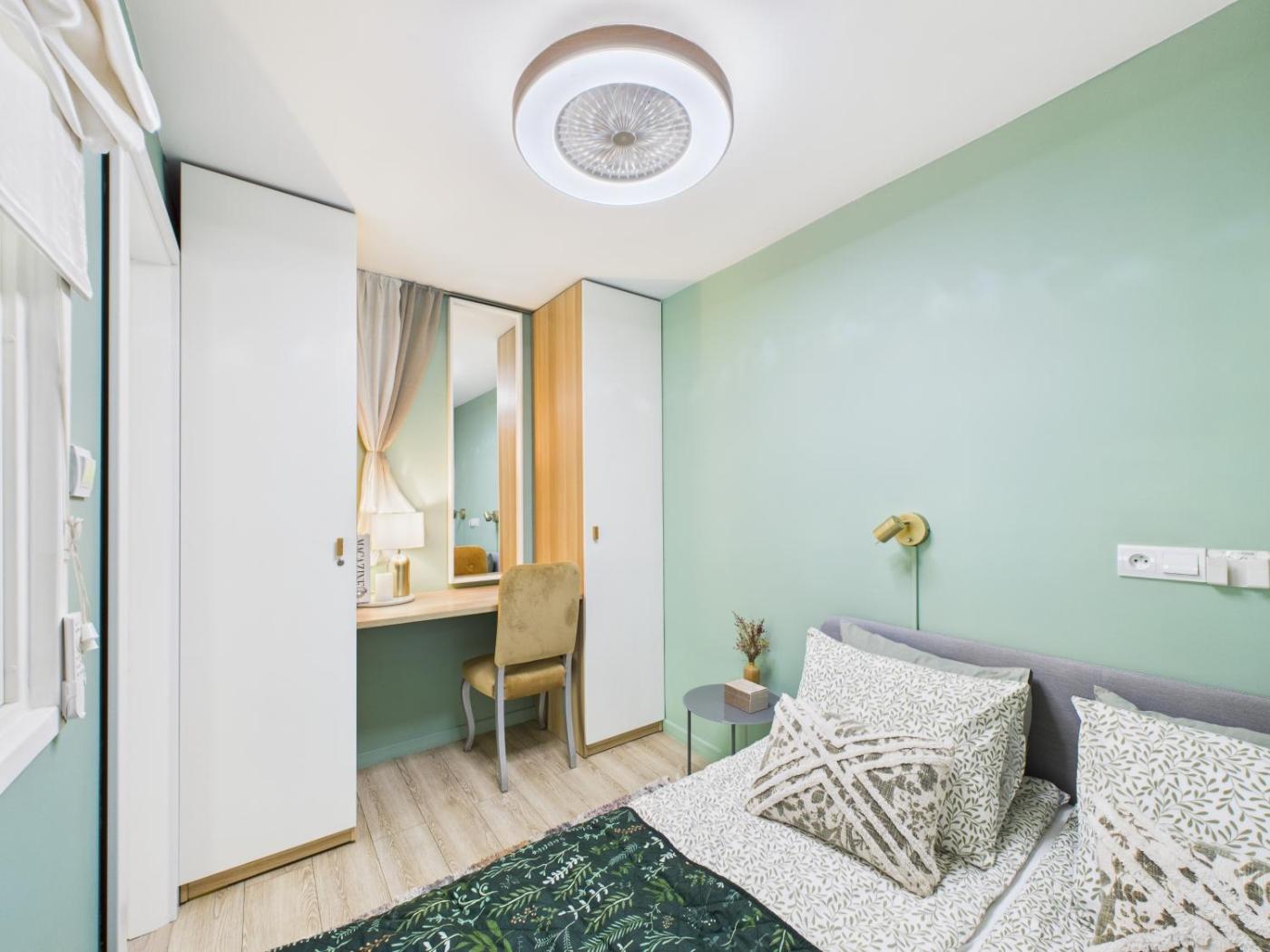 Apartament z 1 sypialnią. Ten apartament z oddzielnym wejściem mieści salon, oddzielną sypialnię oraz łazienkę z prysznicem i suszarką do włosów. Posiłki można przygotowywać w dobrze wyposażonej kuchni z płytą kuchenną, lodówką, zmywarką do naczyń i przyborami kuchennymi. Apartament ma dźwiękoszczelne ściany. Do dyspozycji Gości jest pralka, zestaw do parzenia kawy i herbaty oraz telewizor z płaskim ekranem i dostępem do platform streamingowych. Z okien roztacza się widok na miasto. Ta opcja zakwaterowania zapewnia 2 łóżka. Apartament - 4 osobowy. Powierzchnia pokoju ok.: 30 mkw.